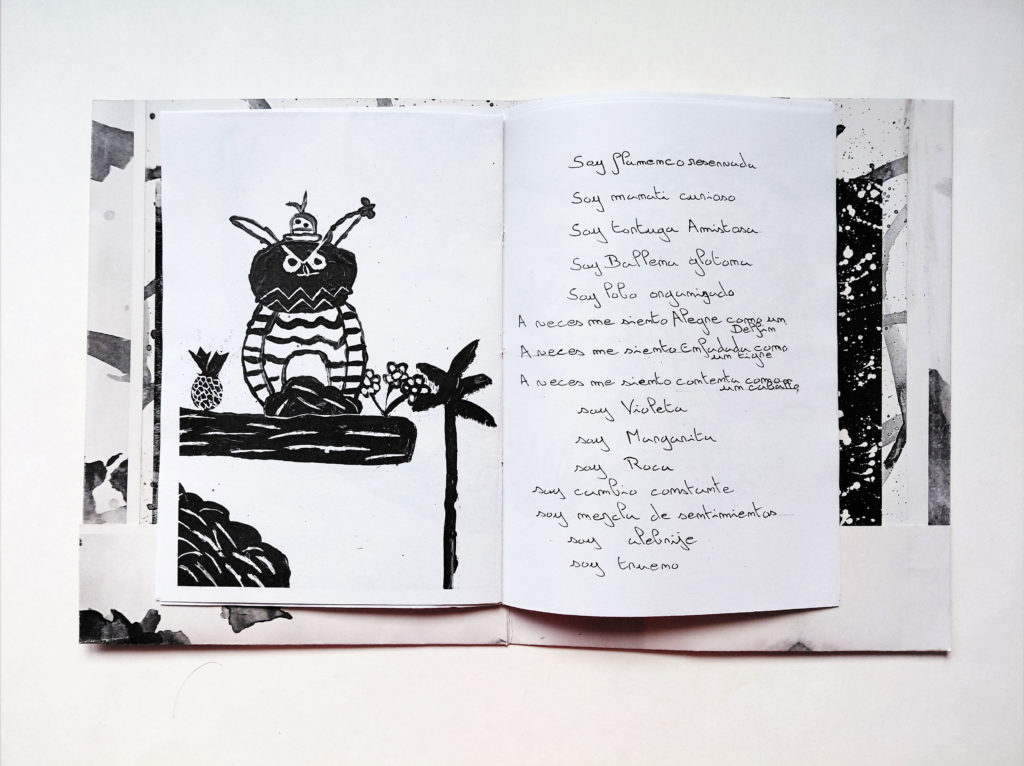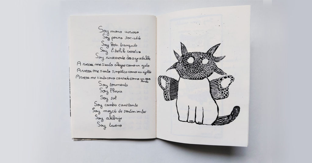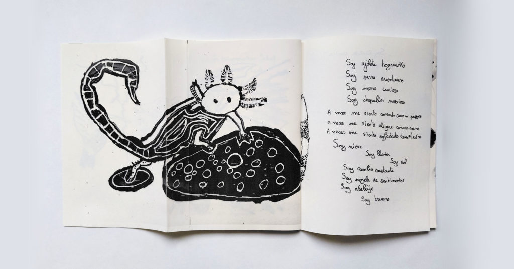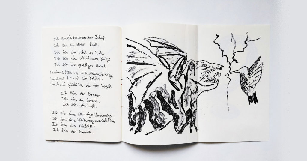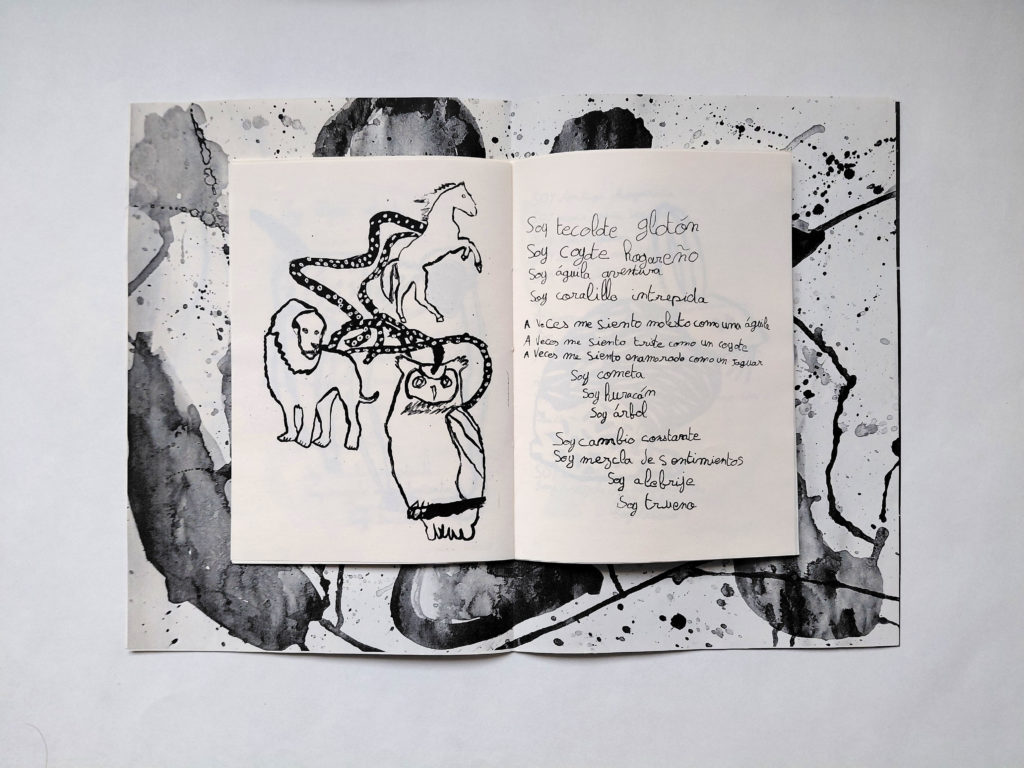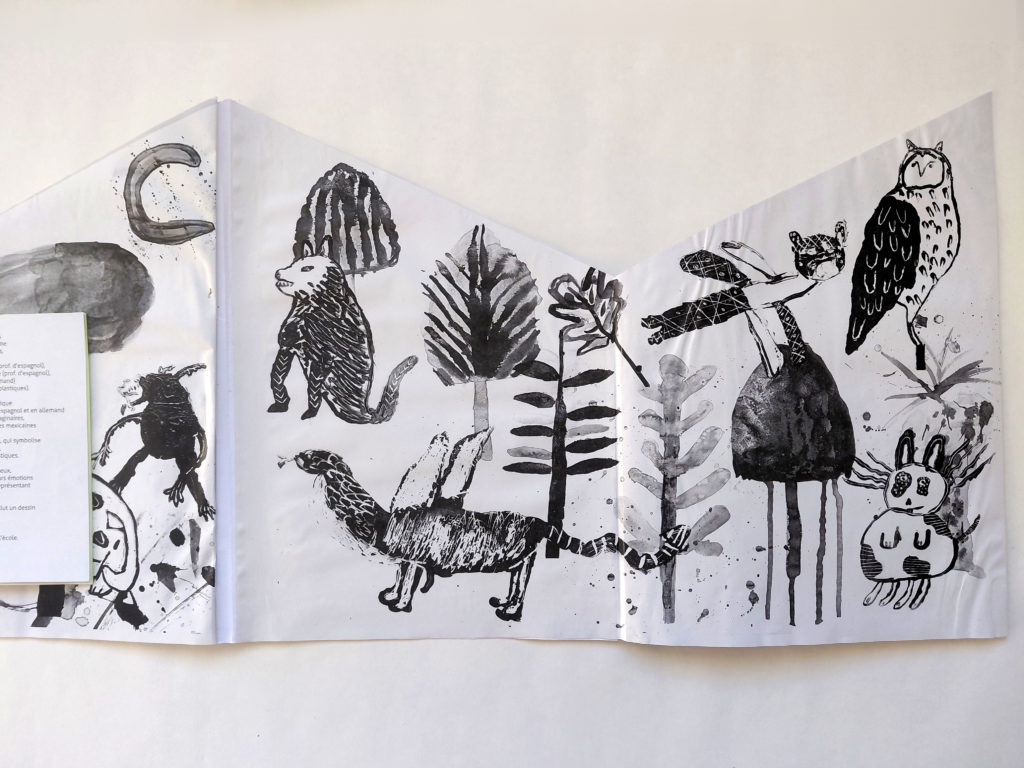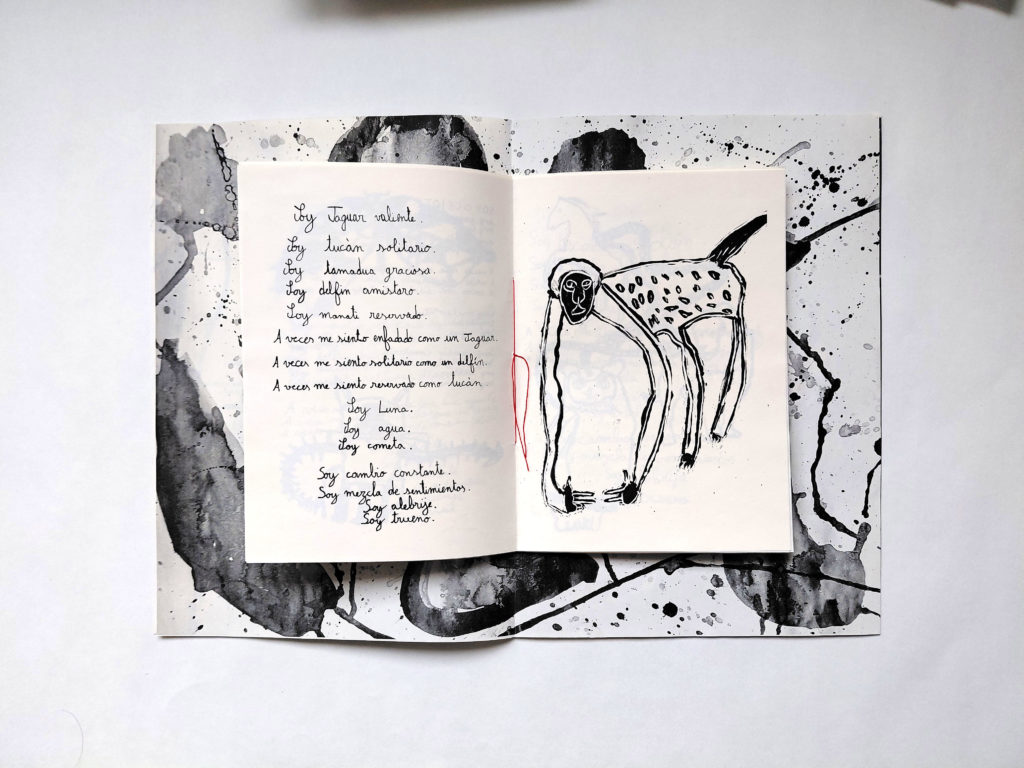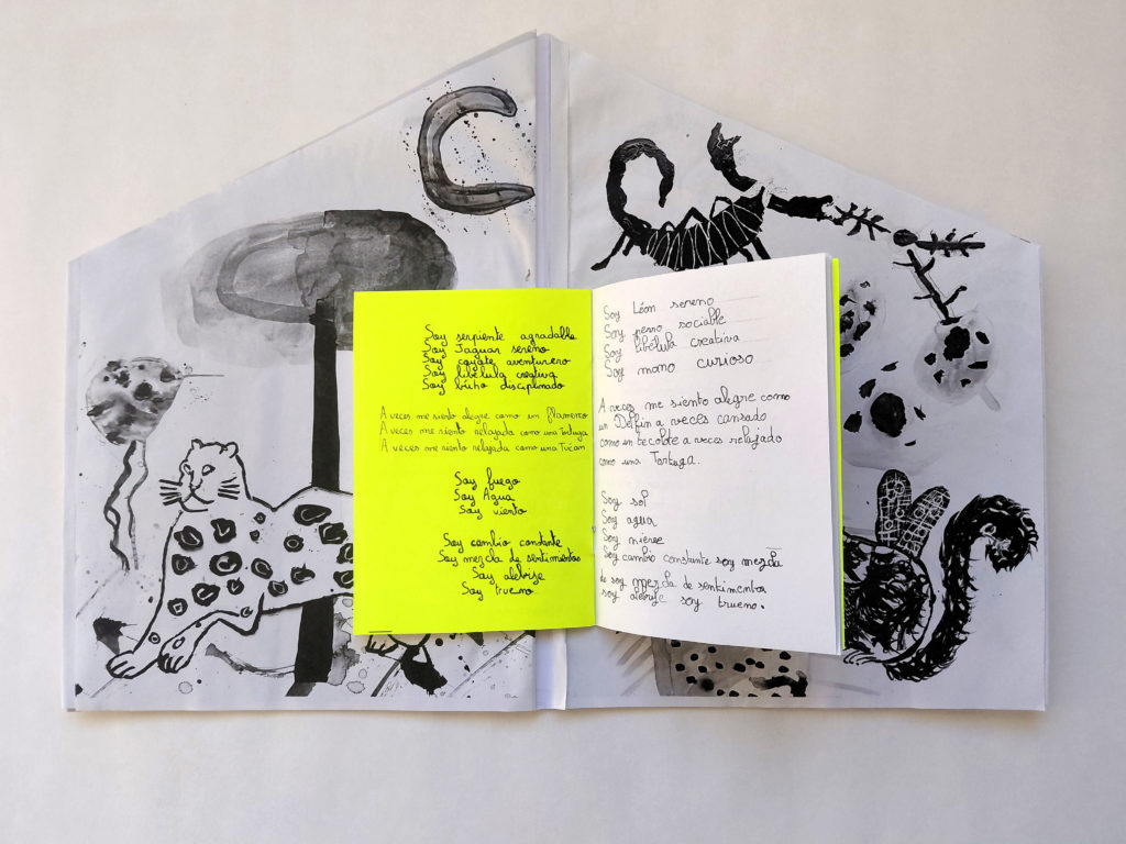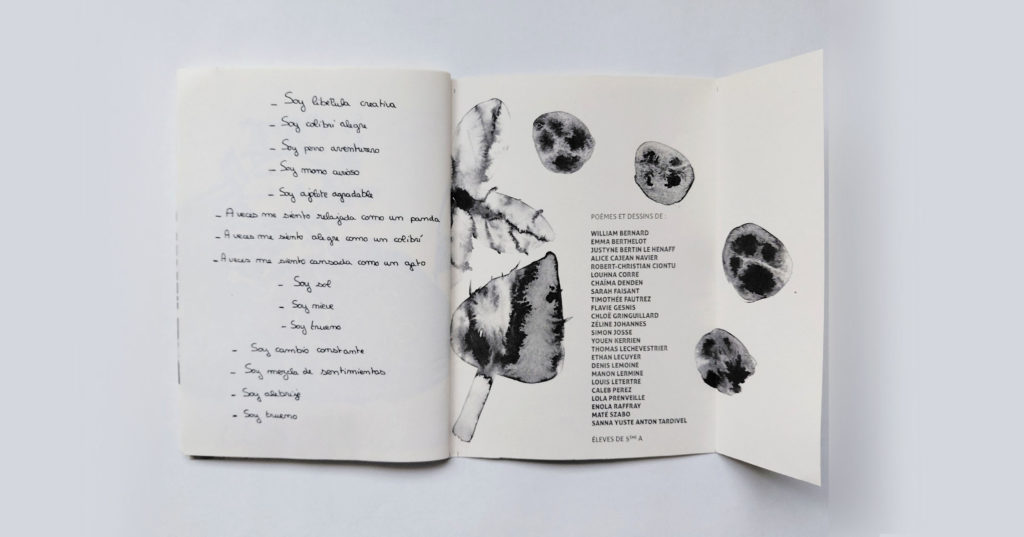 Chaque classe a créé un livre unique, mêlant des poèmes rédigés en espagnol et en allemand avec des gravures d’animaux imaginaires inspirés des créatures totémiques mexicaines de la tradition des Alebrijes. Il symbolise l’union entre l’esprit et la nature et donne vie à des créatures fantastiques. Les poèmes des élèves, quant à eux, expriment leur personnalité et leurs émotions à travers des animaux, chacun représentant un aspect de leur caractère.